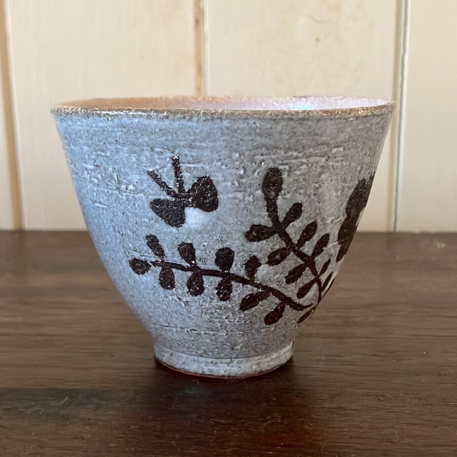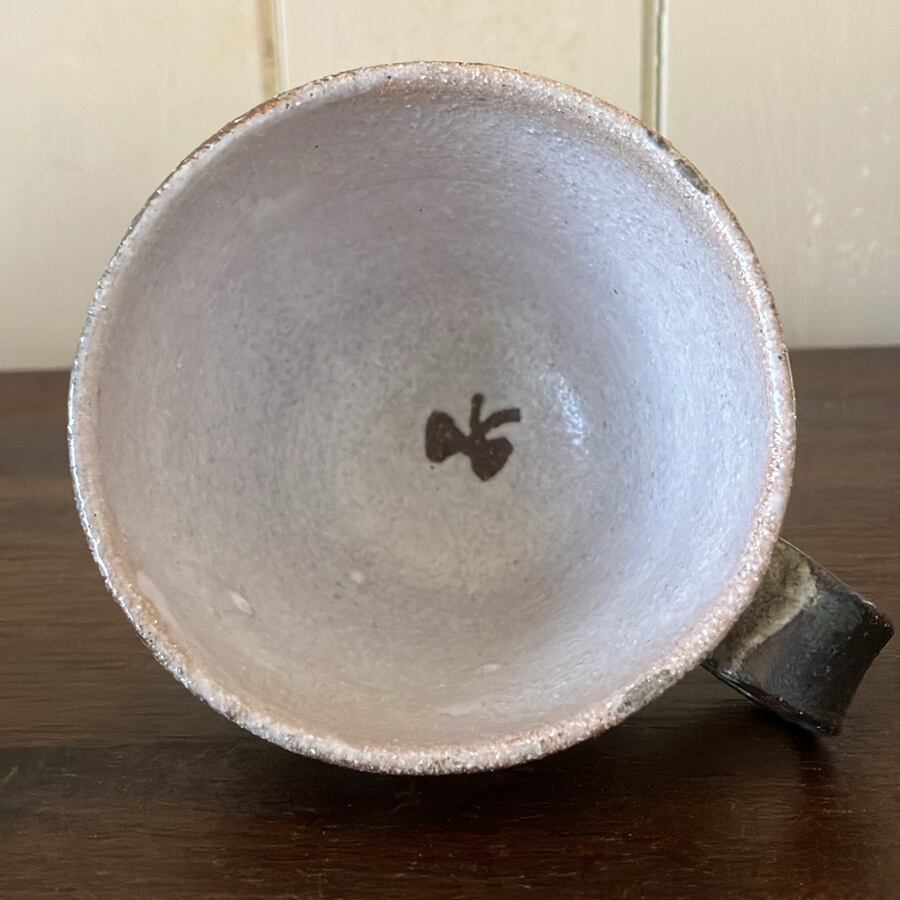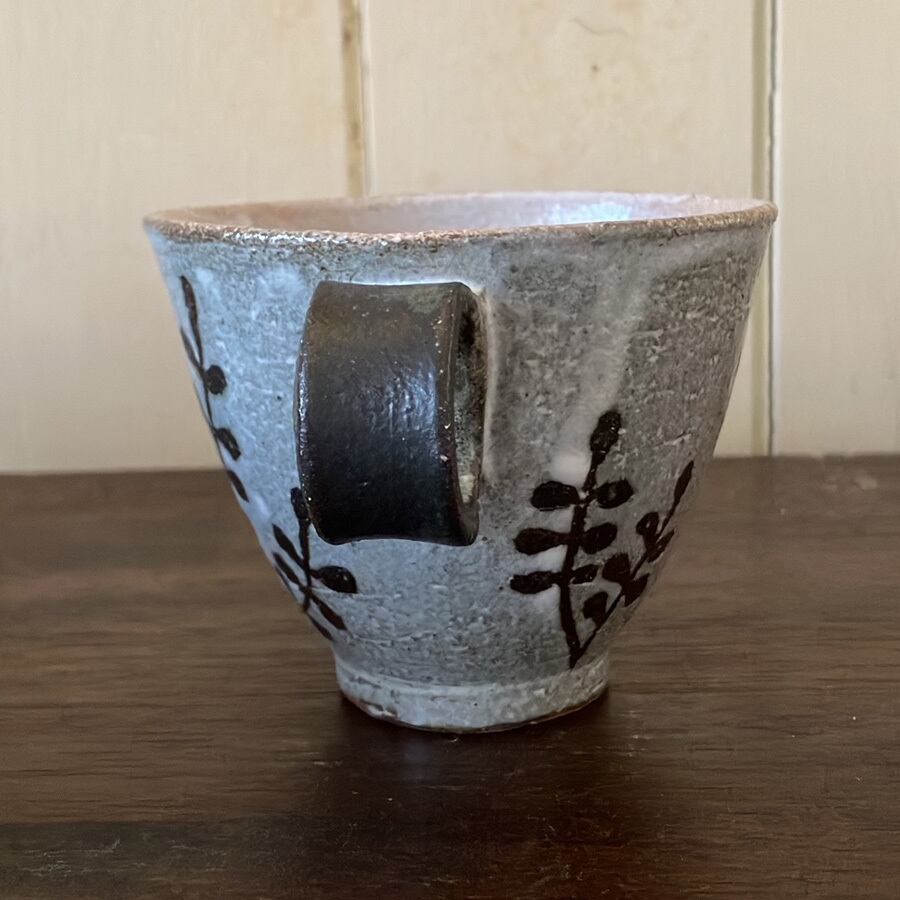 1点1点丁寧に手描きされた絵付けのカップです。絵柄の部分は土の色が出ており、素朴さと柔らかさと味わいがあります。カップの形と絵柄の相性で、日常のちょっとしたひとときが楽しくなったり。ほっこりしたり。中にも蝶々がいるよ!